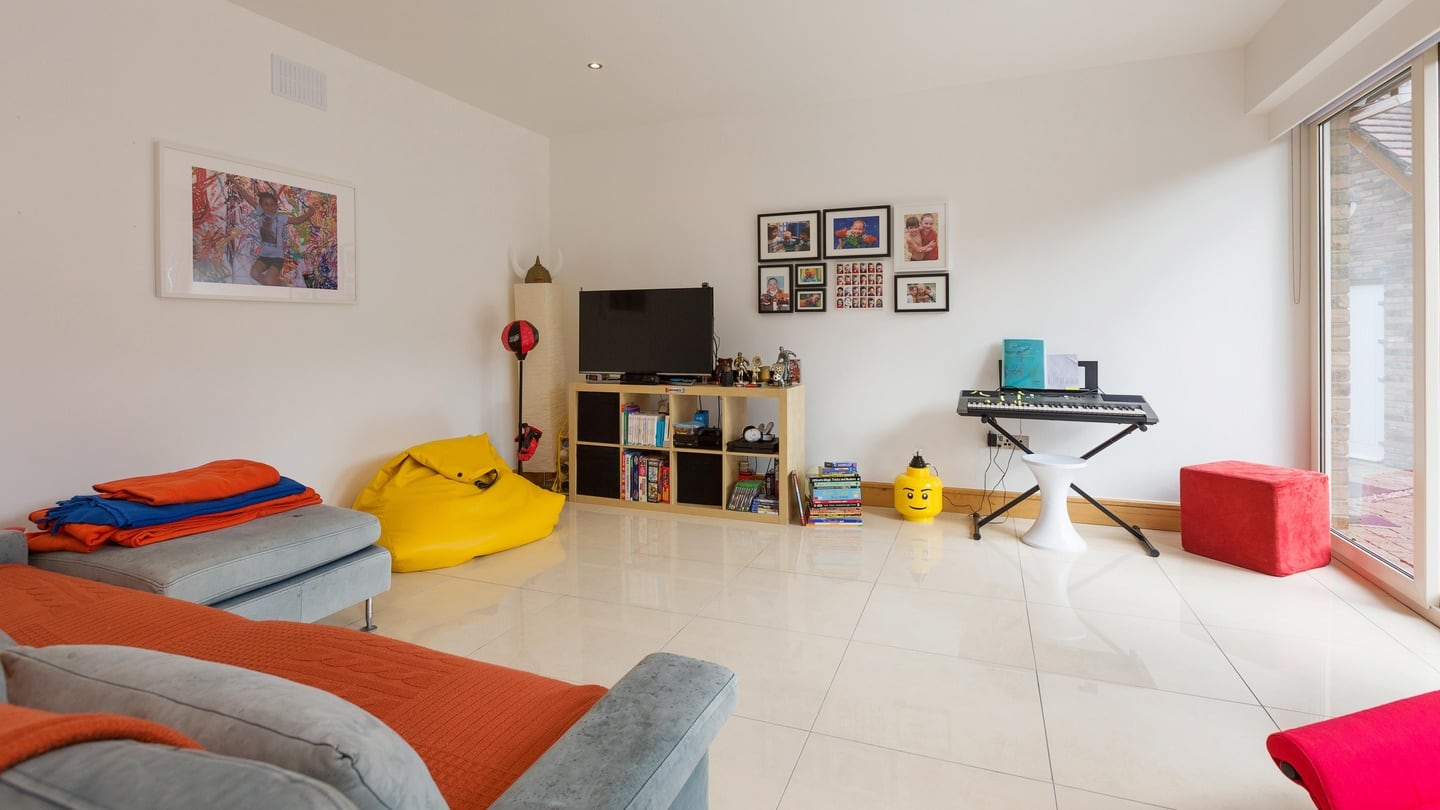 The property comes with a detached mews that extends to 173sq m / 1864sq ft, and has a gym room and double garage downstairs and a one-bedroom flat upstairs.