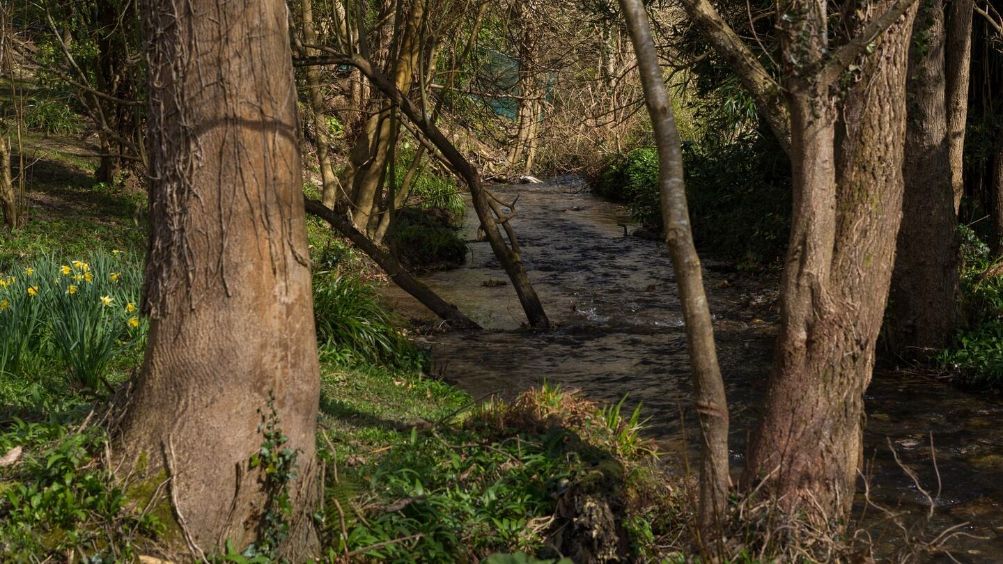 The ground floor rooms all open out to a large south-facing, cobble lock terrace with the landscaped grounds dropping down to a trout stream and woodlands where there are regular sightings of otters, kingfishers and even the odd fawn or two. There are a couple of pheasants who drop by occasionally too.