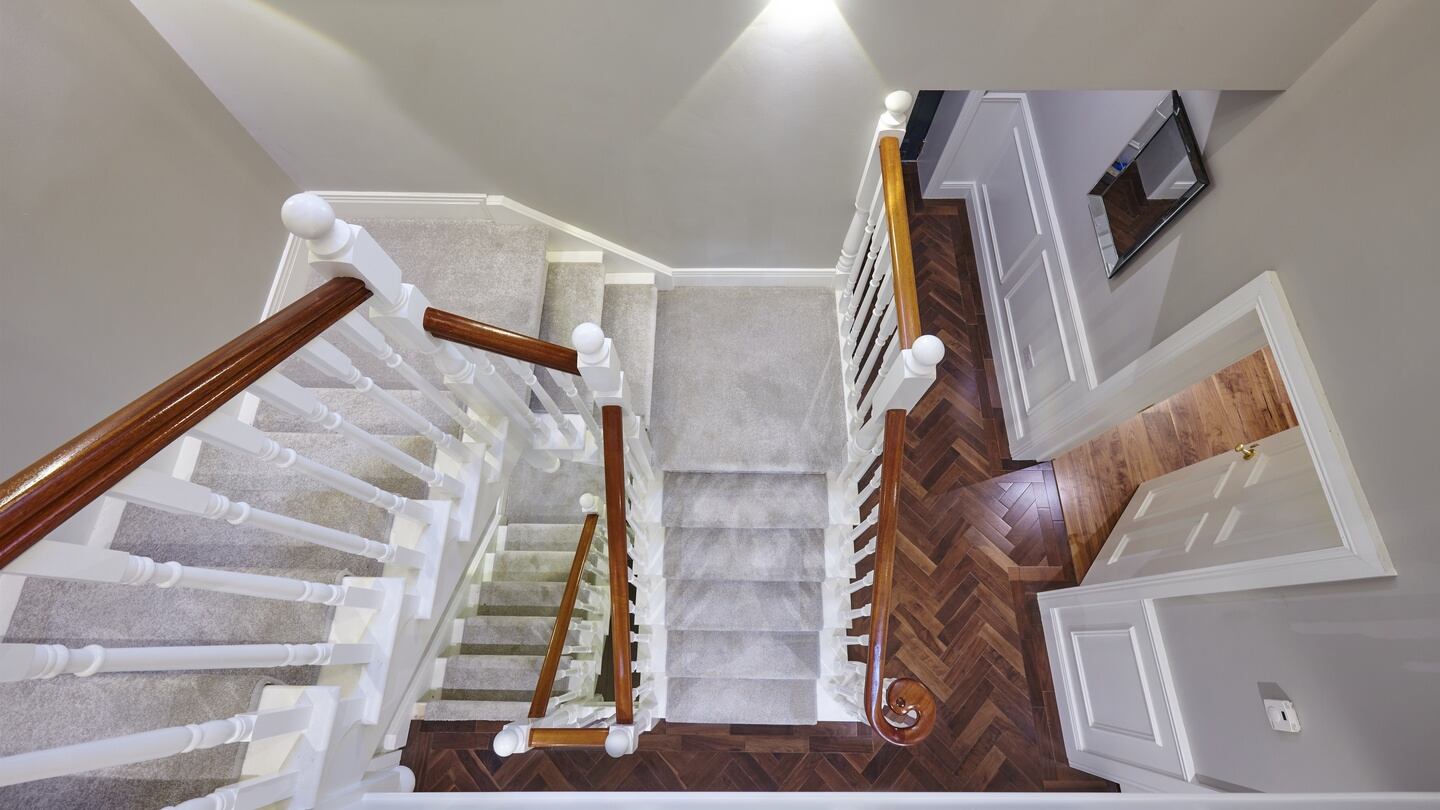 Ellington is the largest house in this private courtyard accessed from a driveway off Temple Road and it’s a very appealing-looking double-fronted detached property that’s two storey at the front and three at the rear. For its design, Ellington, with its granite detailing and red brick, takes its cues from its neighbour, the pretty choir arts and crafts building of St Philip’s Church.
