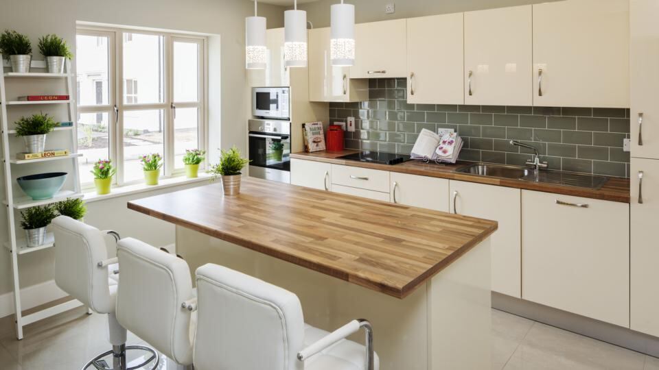 The three-bedroom semis start at €335,000 for 107sq m (1,150sq ft) and will range in price up to €370,000 for a detached property of 114sq m (1,225sq ft). They have vanilla gloss kitchens with a breakfast bar replacing the traditional kitchen table. Bedrooms comprise a roomy single and two doubles with a shower en suite bathroom in the master.