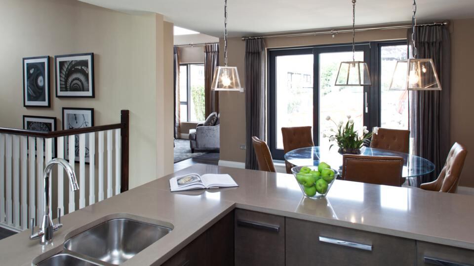 A contemporary scheme, Grosvenor Manor is located on private grounds to the rear of 29-43 Grosvenor Place, off Leinster Road, and consists of five three-bedroom townhouses (124sq m -129sq m), and four two-bedroom apartments (79sq m – 91sq m), which range from € 399,000 to € 797,000 for the showhouse, through estate agent Kelly Walsh Property Advisors.