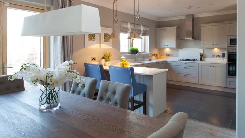 The living rooms all have a wood-burning stove, which is unusual considering their BER A-rating. The doors leading from there to the kitchen slide into the walls themselves rather than open out, and white-painted coving and wall panelling come as standard.
