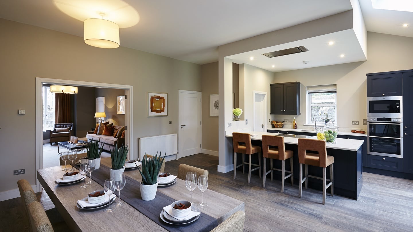 New houses are spacious with 3m (10ft) high ceilings on the ground floor, and feature a dual aspect open plan kitchen, dining and living area.