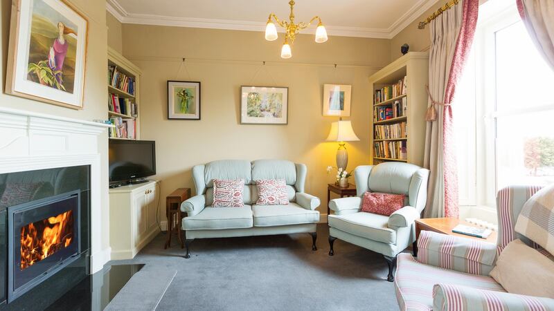 A drawing room is opposite with a flush inset wood-burning stove, and two further bedrooms are at this level.