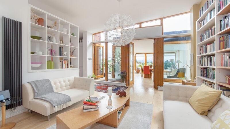 And it is these that strike you as you wander this high-ceilinged, 110sq m (1,184sq ft) apartment with a glass sunroom that has views across and down to Glasnevin Cemetery (with the Daniel O’Connell tower reaching above the trees) and the Botanic Gardens. The Dublin and Wicklow mountains are visible beyond.
