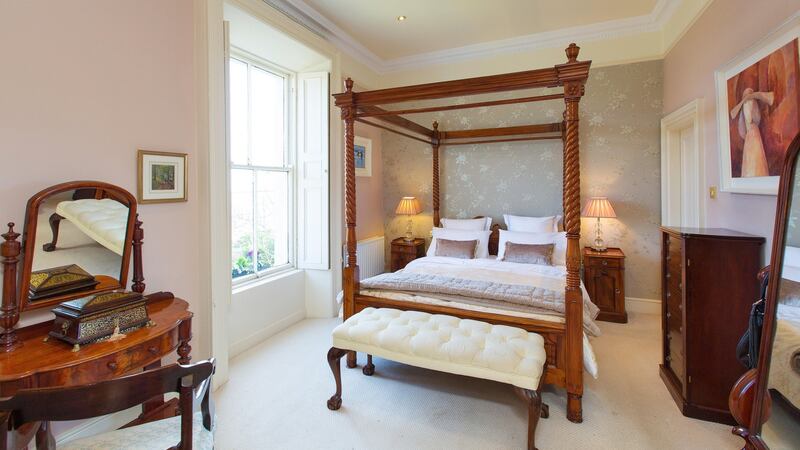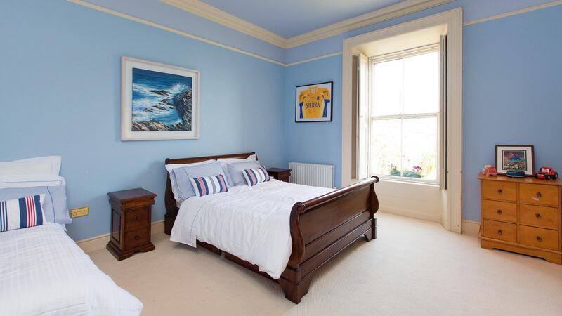 The three other bedrooms are upstairs, one on the return, and the other two mirroring the reception rooms below – so expect large elegant spaces with views of the sea. There’s also a super family bathroom, with a fabulous free-standing bath.