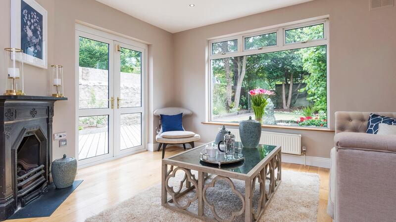 Agent Sherry FitzGerald is asking €1.395 million. The floor area covers 240sq m (2,583sq ft) and there are five bedrooms, two reception rooms, kitchen/breakfast/family room, utility and two bathrooms. There is a garage and vehicular access to the rear of a garden with water feature, pathway, lawn and side decking area. The stone walls are original, the high evergreens and geranium so much a part of things that they too might well be original.