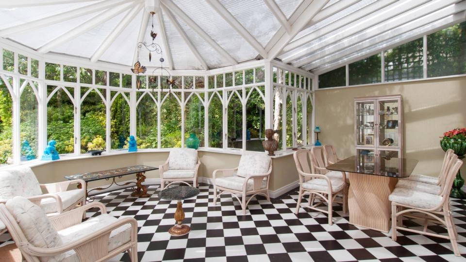 Curiously, what they didn’t do at the time was install French windows to provide access into this new space from reception rooms – they kept the original windows and so access to the sunroom is via the kitchen – and this is something new owners will consider. They will also update the kitchen and bathrooms – the latter feature coloured suites popular when the house had its last major overhaul.
