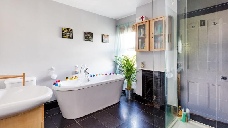 One of the selling points of the property – besides its location, good condition and three reception rooms – is the rear garden. Extending to 27m (90 ft) with a westerly orientation, it has mature trees, rambling roses, a sunken patio and dining area. “It really was the garden and the large family bathroom that attracted us to the house, the kids just disappear into the trees and spend hours climbing.”
