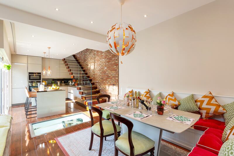 The house – then in poor condition – was bought for the bargain price of €380,000 in 2012 and subsequently entirely demolished. It makes this an unusual build – a new house in the middle of a Victorian terrace. To maintain the streetline, reclaimed redbrick was sourced for the facade, which features sash windows and a new fanlight over the front door similar to other houses on the quiet road. It’s now a four-bedroom house – the fourth bedroom is in the attic space – with two bathrooms and guest toilet.