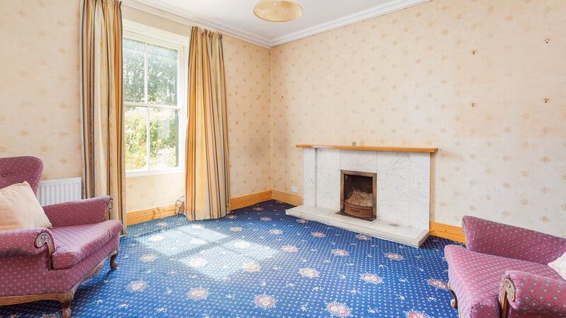 Inside, the house of close to 2,000 sq ft, has an uncomplicated layout with four sizesable rooms on each of its two floors. The ground floor has two fine reception rooms on either side of the wide hallway with the drawingroom to the left being slightly larger. They are bright, plain rooms with few original features though it’s likely that, as army accommodation there were few decorative frills to begin with. Overall, the house is in need of updating.