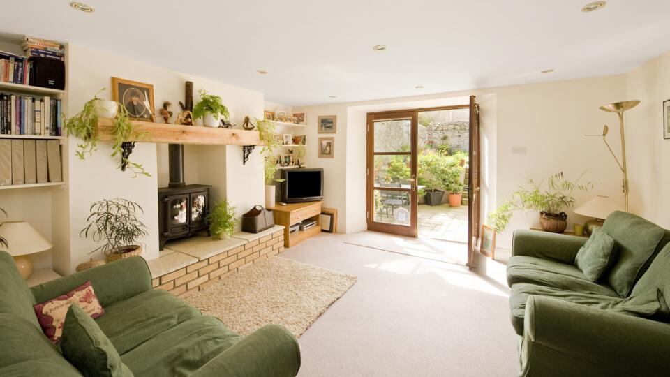 The original kitchen is now a bright familyroom with French windows leading on to a flower-laden al fresco dining area in the rear garden. The alcove where the old range stood now houses an elevated stove. This is where the family spend winter evenings.