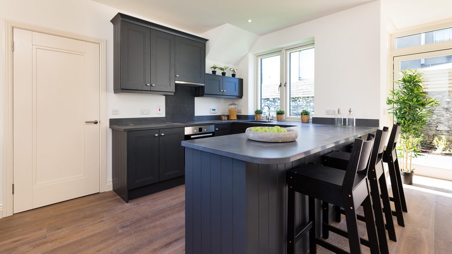 Number 4, at 100sq m (1,176sq ft), is smaller and has three bedrooms, a kitchen/ living/diningroom, family bathroom and guest WC. The bright kitchen has attractive honed, charcoal granite worktops and limed oak flooring.