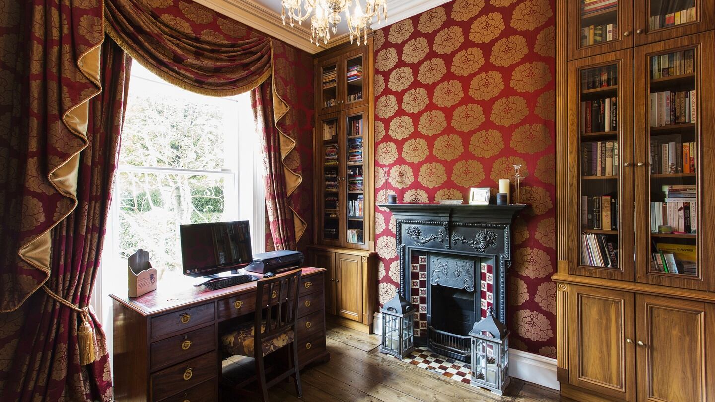 Inside, the classic interconnected pair of reception rooms run front to back to the right, while there is a study to the left. This has padded silk on the walls for maximum quiet and cosiness on those days when you don’t want to be disturbed.
