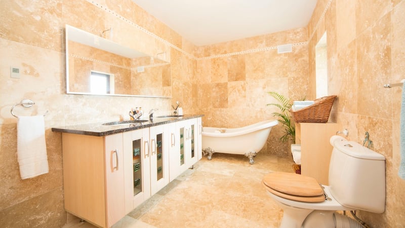 All the bedrooms have fully-tiled en suite shower rooms. The main bedroom has a very large fully Travertine tiled en suite with a slipper bath and shower.
