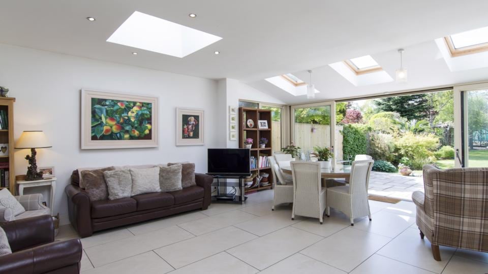 When the current owners bought there were two reception rooms, but they knocked through to create one large room that opens on to the new living area at the rear.