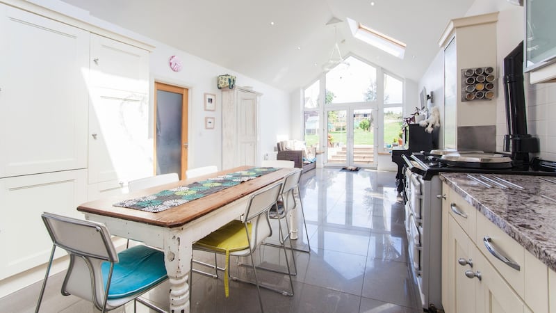 While the owner imprved the three-bedroom house, adding a lovely, bright, vault-ceilinged eat-in kitchen with glass gable wall, and upgraded the dual-aspect livingroom, would-be buyers will be scrutinising planning permission and the drone footage to get a better feel for the site and what views the single-storey structures will have across the Howth Special Amenity Areas buffer zone that abuts the land.
