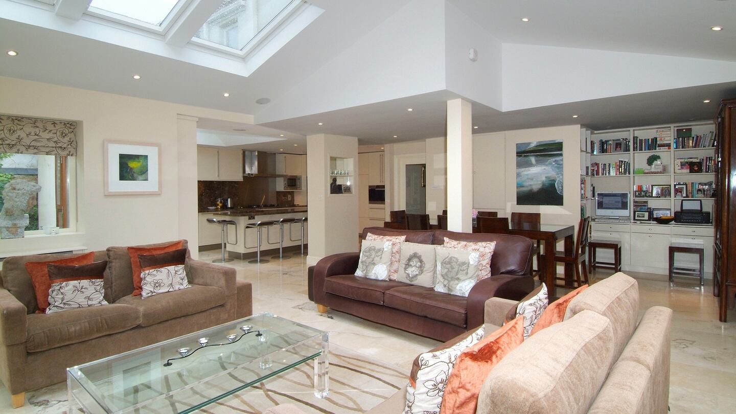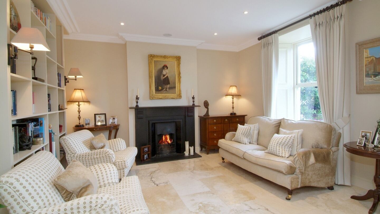 Upstairs are four bedrooms, three of them doubles, and more travertine in the swish family bathroom that wouldn’t be out of place in an upmarket boutique hotel. Clever touches – such as a light well immediately beyond the hall door that makes the entrance even lovelier, hand-painted friezes in the children’s bedrooms, window seats in the master bedroom and high spec in absolutely everything – make this house an obvious choice for those who like their period details served up with a dash of sweeping chic.