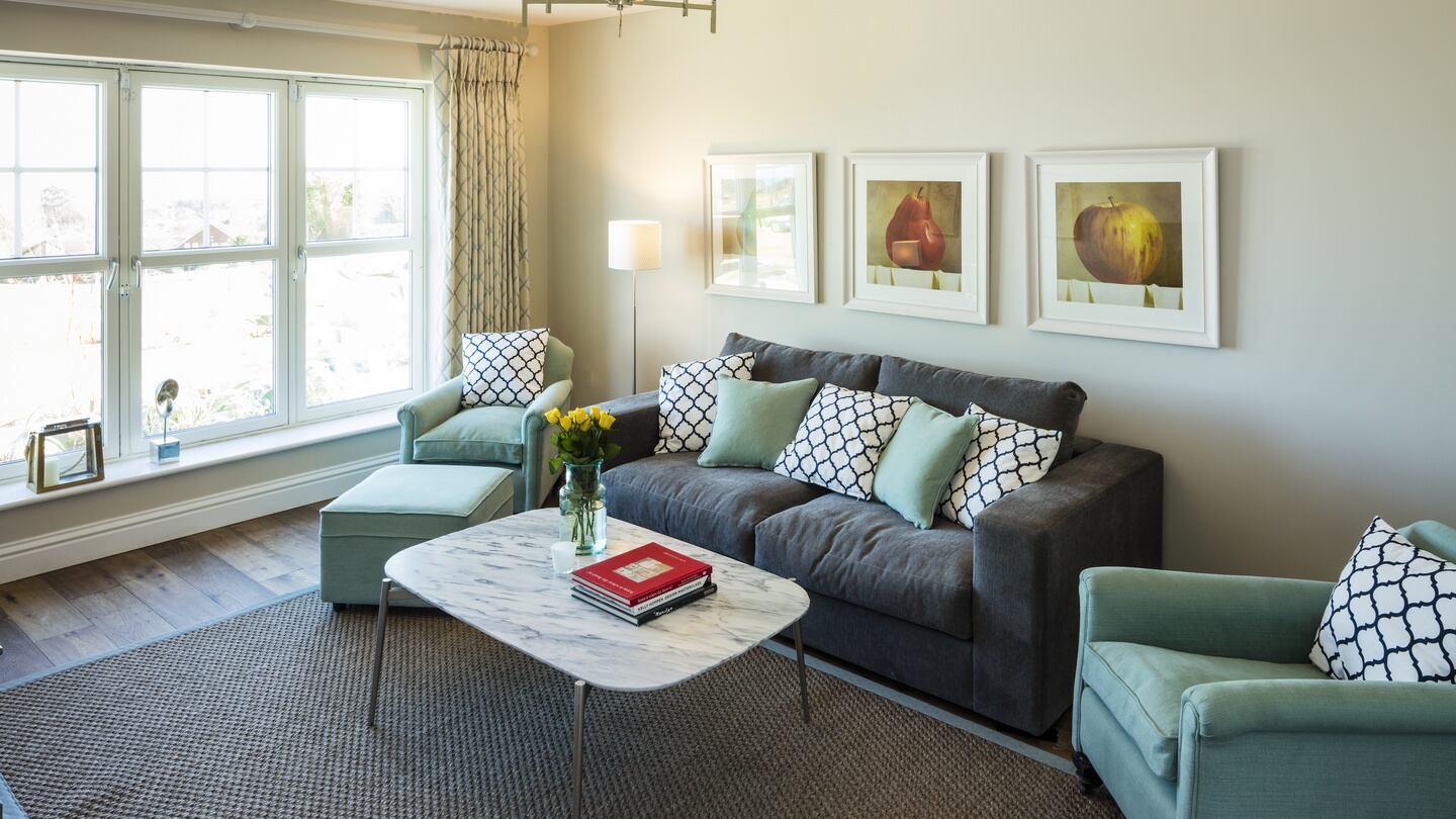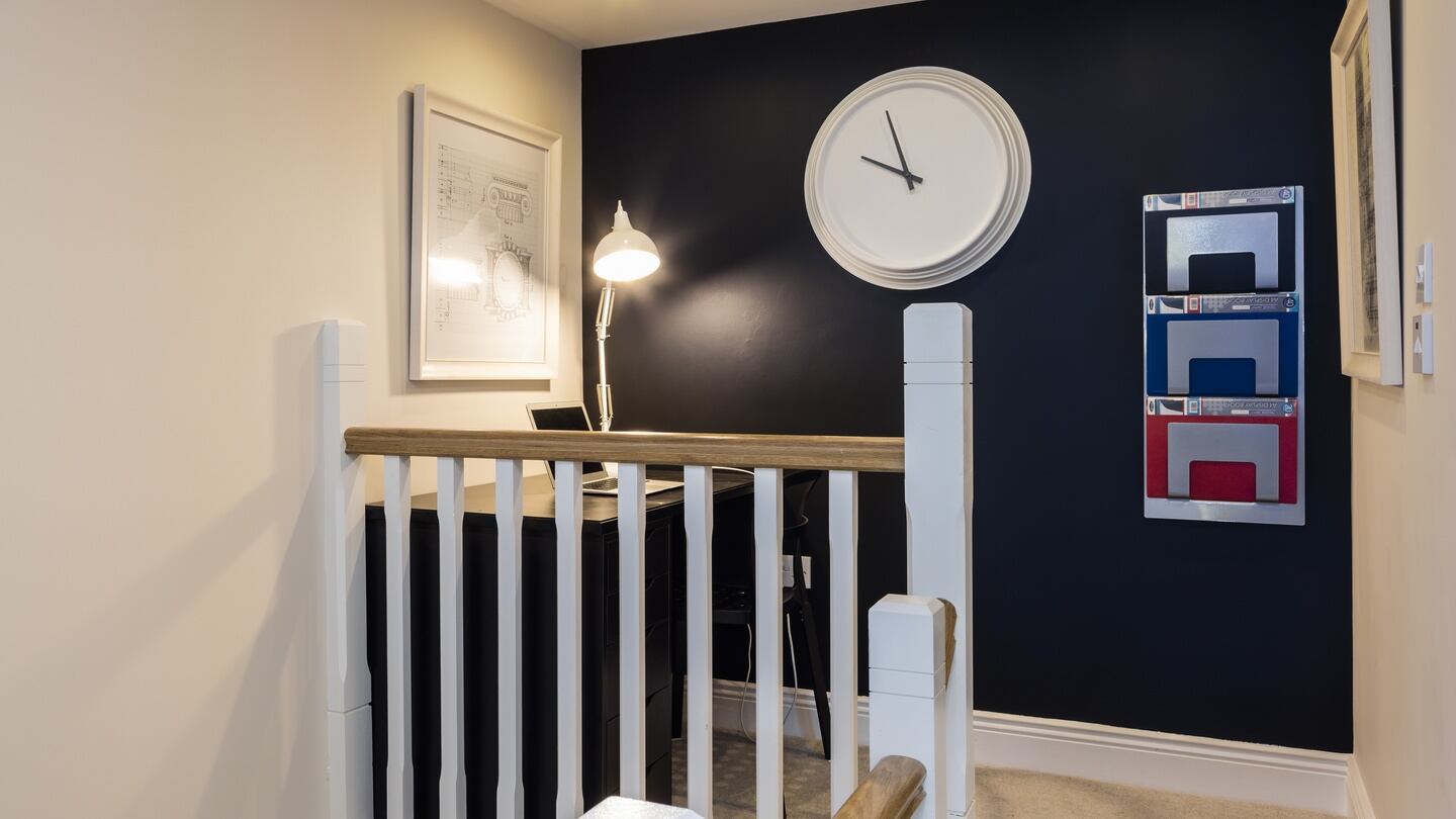 Her clever design ideas include a tiled rectangle under the dining table in the three-bed showhouse that looks like a rug. A small galleried space a few steps up from the upstairs landing, big enough for a desk and chair, is another feature of the three-bed house.