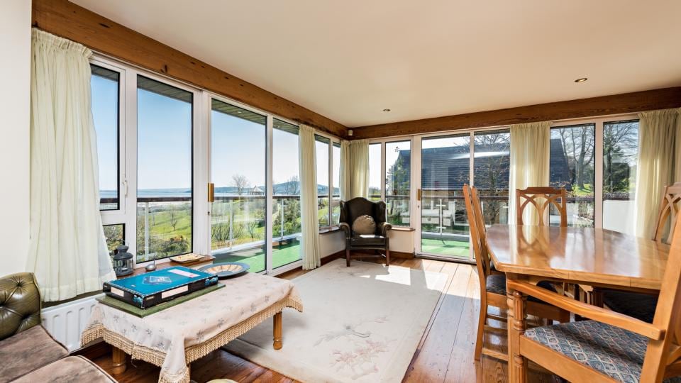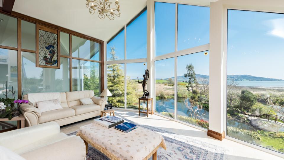 Stretching over 374sq m, the glass-fronted property has an idyllic setting on the sandy shores of the lough.