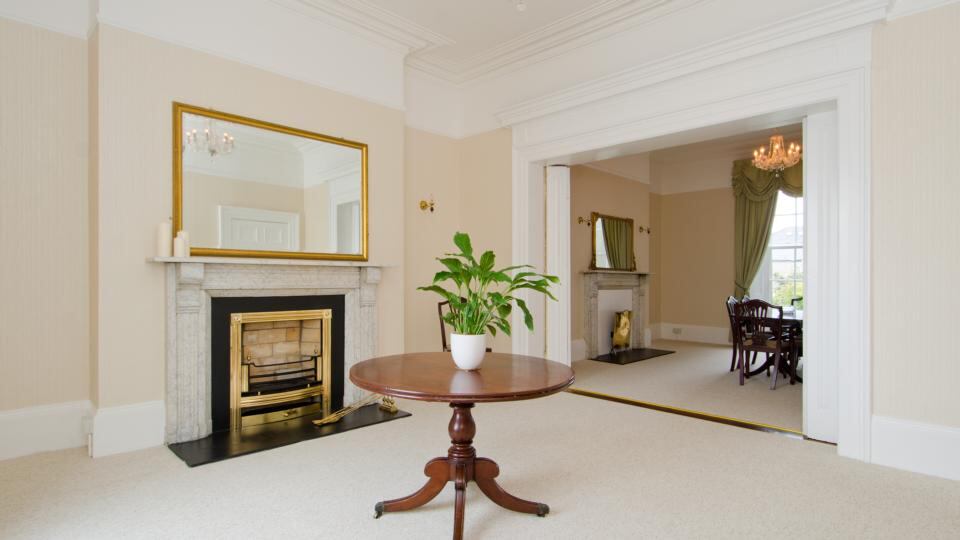 The house has two principal reception rooms on the ground floor with original fireplaces and soaring ceilings. The dual aspect windows allow views over Dublin Bay to the front and the garden to the rear.