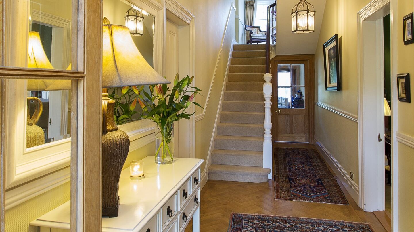 There’s also an elegant diningroom and connecting drawingroom with two fine Adams-style fireplaces and a bay window to the front.