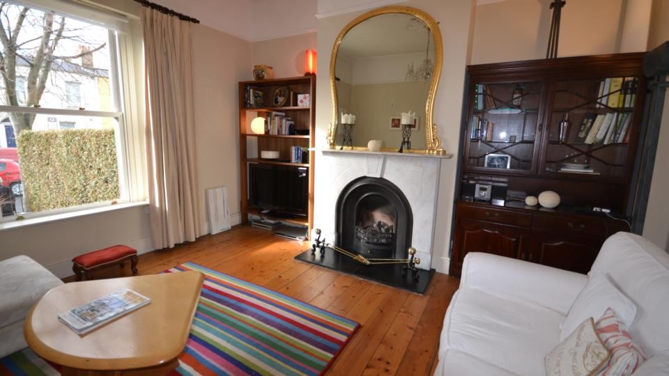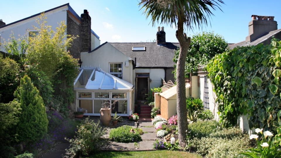 But they should. Number 59 is a two-bedroom house with an unexpectedly large and sunny back garden that featured in Gerry Daly's Room Outside programme for RTÉ. The secret, secluded and south-facing space is home to several specimen trees including two palms, a specimen Fatsia japonica, an under-lit olive tree, a Mexican orange and hydrangea and rhododendron. Out back the traffic levels seem to dim too.