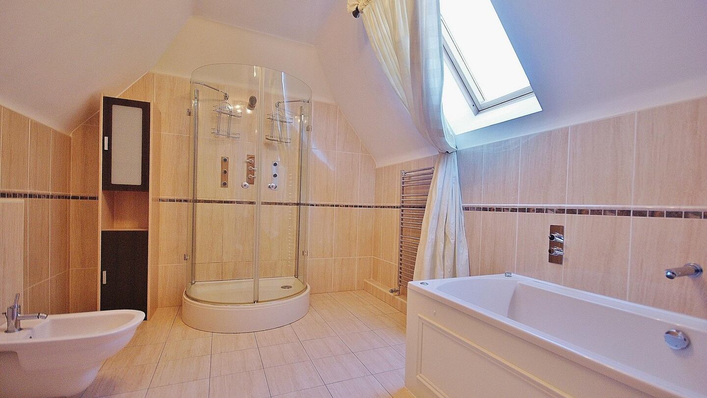 The bright first floor has a large and useful landing – it is a nicely shelved office at the moment – and two more bedrooms. Both have attractive dormer bay windows with seating and both are en suite. The main bedroom, which also has a dressing room, is especially large.