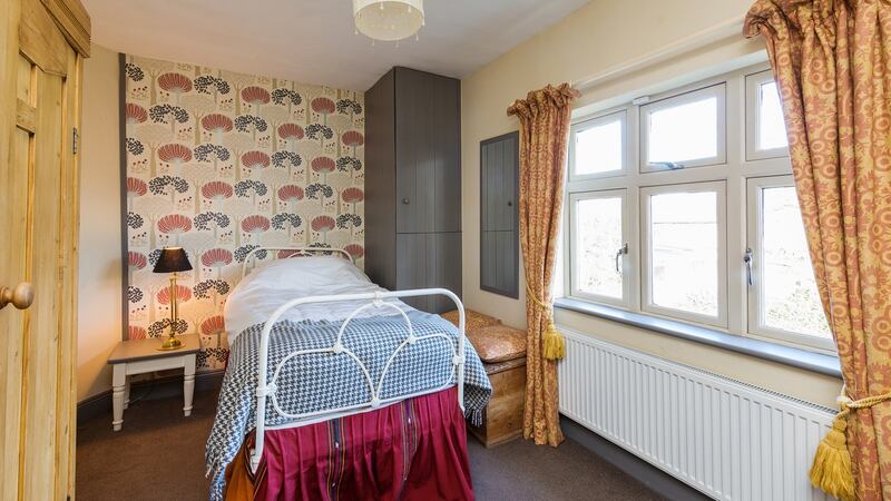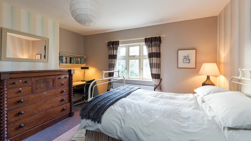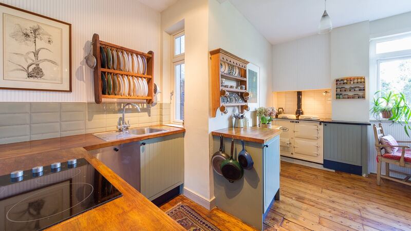 They installed new double-glazed windows, a wood-burning stove in the living room and decorated throughout in a lovely warm style. The quirky changes to the eat-in kitchen – it no longer has a back door, just two windows including a large picture window – may not be to new buyers’ tastes but they will warm to its country style with its Aga and painted timber cupboards.