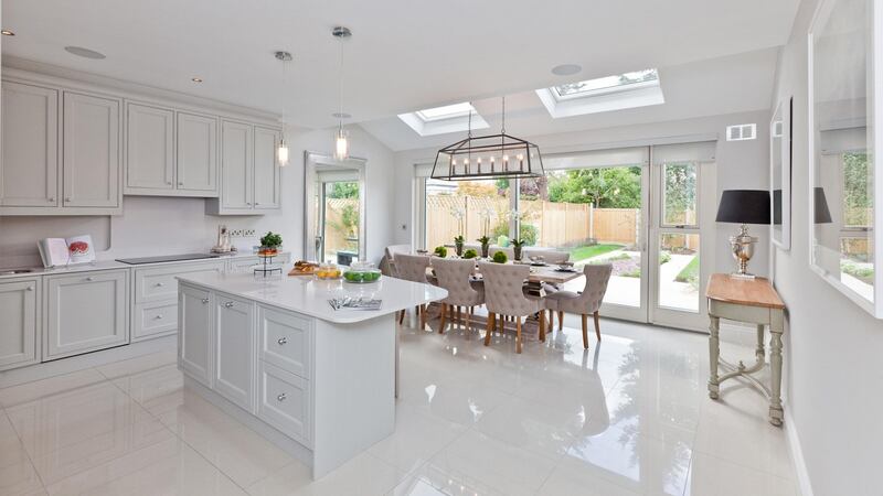 In the Dalkey development the houses come with painted kitchens, Silestone countertops by QK Kitchens, and Neff appliances, including a washer and drier.