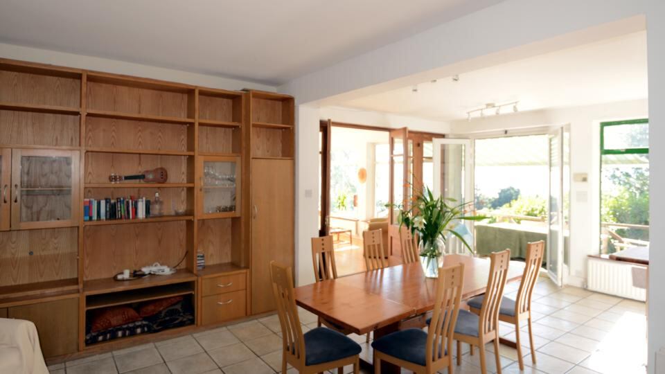 Including the extension, the house has four reception rooms, seven bedrooms and seven bathrooms. In 2000, the current owner replaced the original windows and installed double glazing and insulation, which means despite the large amount of glass the 450sq m (4,850sq ft) house is warm.