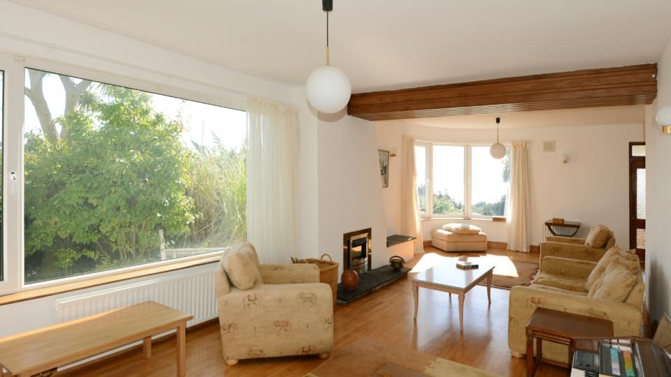 Windgate has a large familyroom downstairs with narrow- strip maple flooring, new teak doors and an open fire. Upstairs, in the extension, is a second living area with a large roof-top balcony overlooking the mature gardens and the Irish Sea.