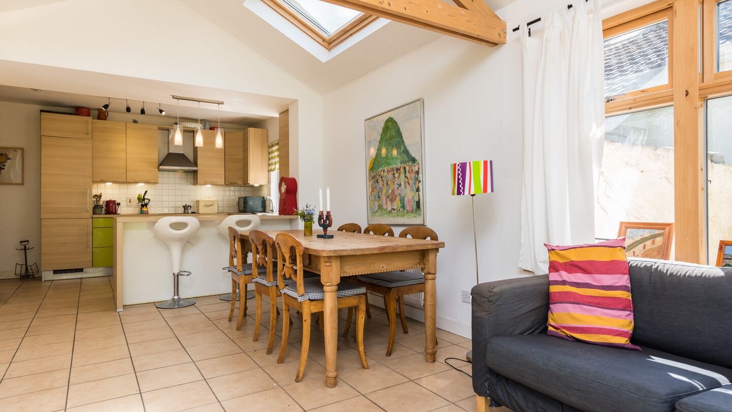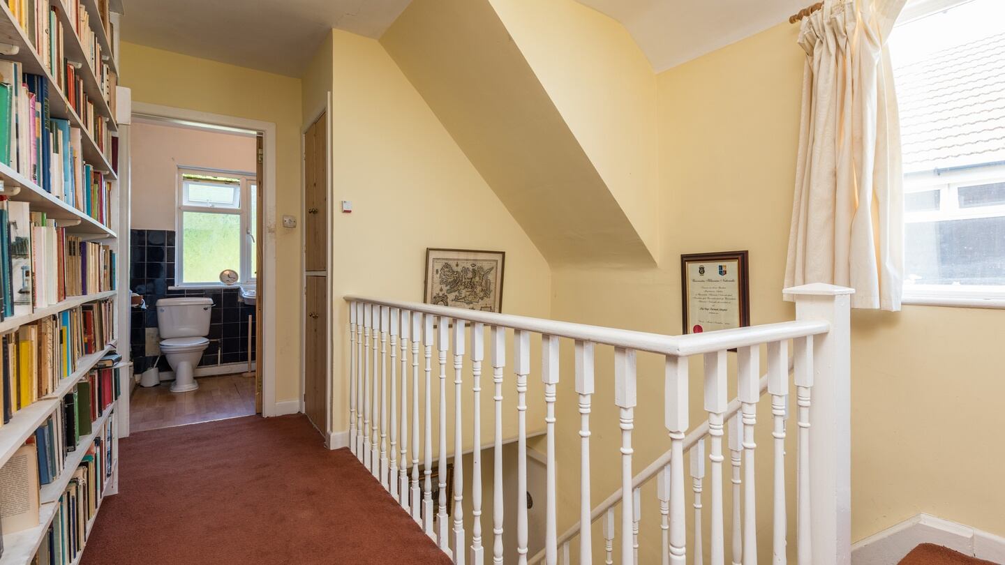 Novelist and critic Eilís Ní Dhuibhne’s home is a three bedroom detached house in a cul de sac looking over the beach at Shankill, Co Dublin, with views of Killiney Bay and Dalkey Island. It’s in a peaceful setting 10 minutes walk to Shankill Dart Station and one kilometre from Shankill Village. Built in the early 1960s (1734 m), the house includes a lounge, dining room, library and three bedrooms. With a deck to the front for morning sun, the private west facing back garden has a stone patio, lawn and shrubs.