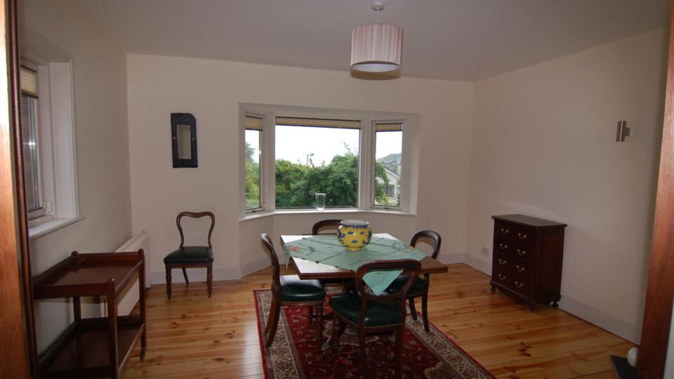 The reception hall, big enough to be a living space in its own right, gives direct access to the rest of the house – to rooms such as the diningroom, where there is a timber-surround fireplace and bay window framing sea views. Most rooms, including the sittingroom, have similar or more sweeping views, some to as far as Lambay Island, many taking in Bray Head.