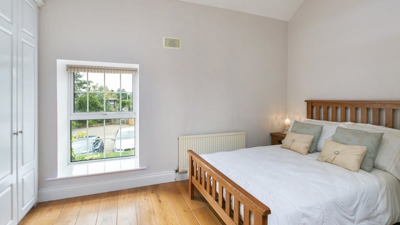 The stone-fronted property, which boasts views of the village’s landmarks including St Columba’s Church and the historic Round Tower, is an end-terrace townhouse within a converted three-bay, two-storey stone-cut property. A former vicarage – built circa 1675, according to the National Inventory of Architectural Heritage – number 1 is gable-fronted and has granite windowsills with yellow-brick dressings.