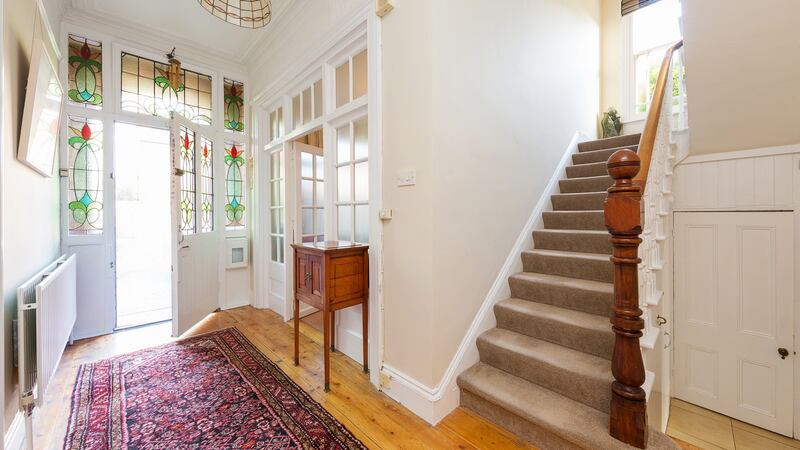 The house retains all its period features, including ceiling roses, sash windows, stained glass, fireplaces and flooring.