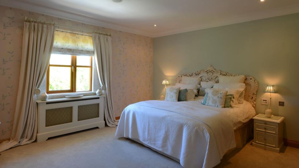 Upstairs there are four double bedrooms, all with en suite. (There is a box room downstairs that could work as a small fifth bedroom or study. It is currently in use as Lisa’s dressing room/walk-in wardrobe.)