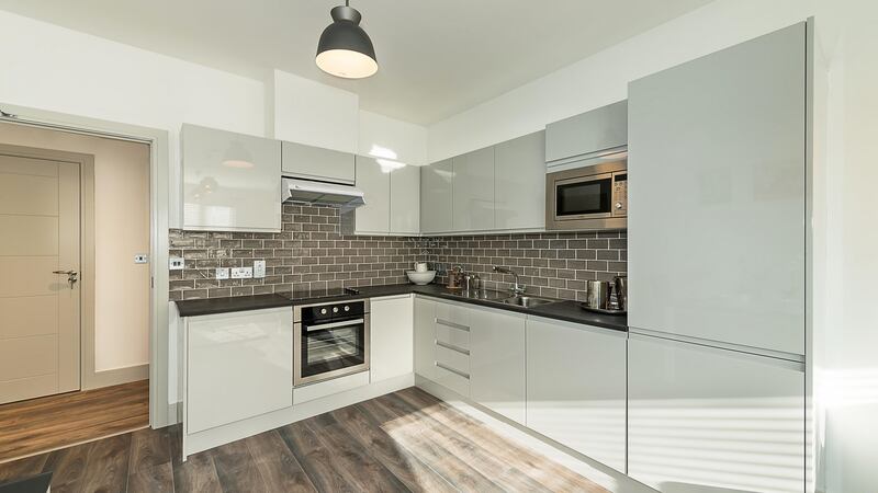 The two-bed apartments are sizeable at 89sq m (950sq ft) – larger than many of the terraced houses in the area. Both bedrooms are bright and spacious and the master is en-suite. Kitchens by Reilly Brothers come as standard as do built-in wardrobes. Flooring – apart from in the show apartments – is extra.