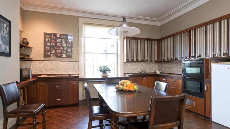 Number 10 has been beautifully maintained by its owners, one of whom is an architect: its original period features – cornicing, fireplaces, sash windows – have been complemented by modern lighting and furnishings. The entrance hall opens into the large interconnecting reception rooms. These have a handsome and, according to the owners, very hard-wearing parquet floor. Unusually for this kind of period house, the kitchen has been neatly incorporated into the diningroom.