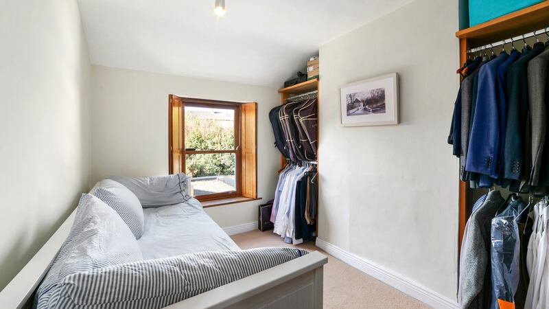 The family bathroom, an internal space, is also at this level and is tiled in soft earthy shades. There are two bedrooms on the upper level, with a smart double the main accommodation. Overlooking the garden it has an internal shower en suite bathroom. The second bedroom is a single, which currently doubles as a dressing room. The house, which extends to about 83sq m (893sq ft), is seeking €725,000 through agent Felicity Fox.