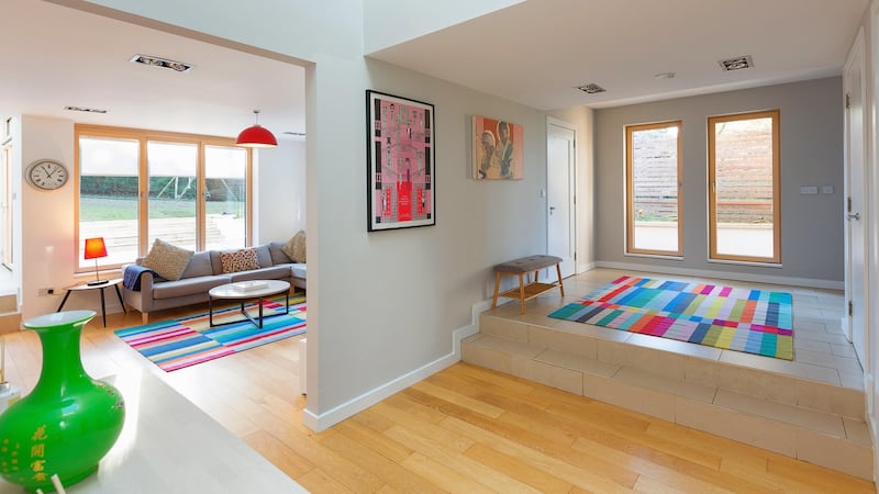 Designed by Extend Architects, the house has a BER rating of B1, which considering the volume of glazing is quite incredible. Every single room has an abundance of light – including the hallway which is in the form of an atrium with a glass pitched roof.