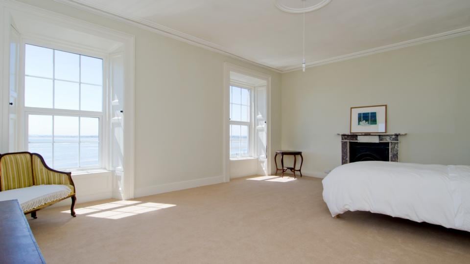A drawingroom on the first floor is perfectly positioned to watch the sun set on Dublin Bay.