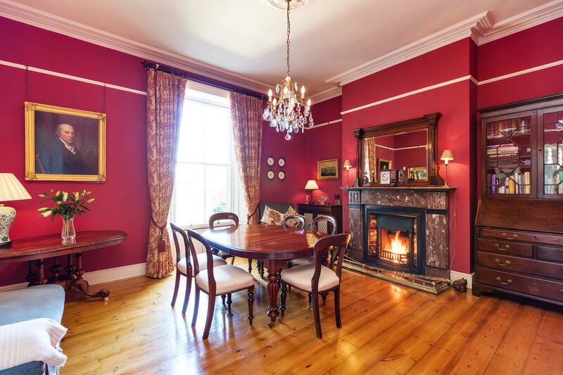 The vendors call the dining room their “Christmas room”, and it’s easy to see why. This space of polished elegance has an old hardwood floor, burgundy walls, ornate, period-style cast-iron radiator, darkly luxuriant marble fireplace and window on to the rear garden.