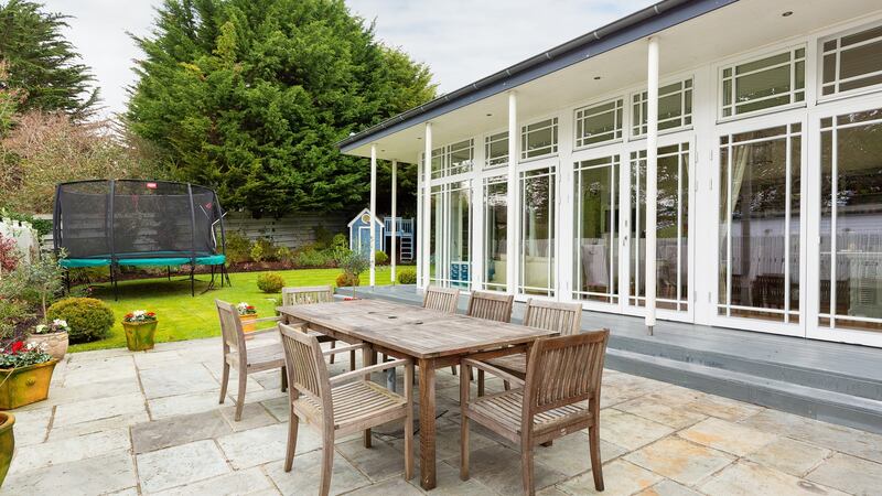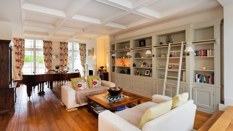 This New England-style house, built around the peak of the Celtic Tiger, was designed with great attention to detail and modelled very much on classic east coast US homes using the best of materials. Outside, the house has a pitched roof, timber-clad walls, balconies opening off bedrooms, a large sandstone patio in the L-shaped rear garden and even a picket fence.