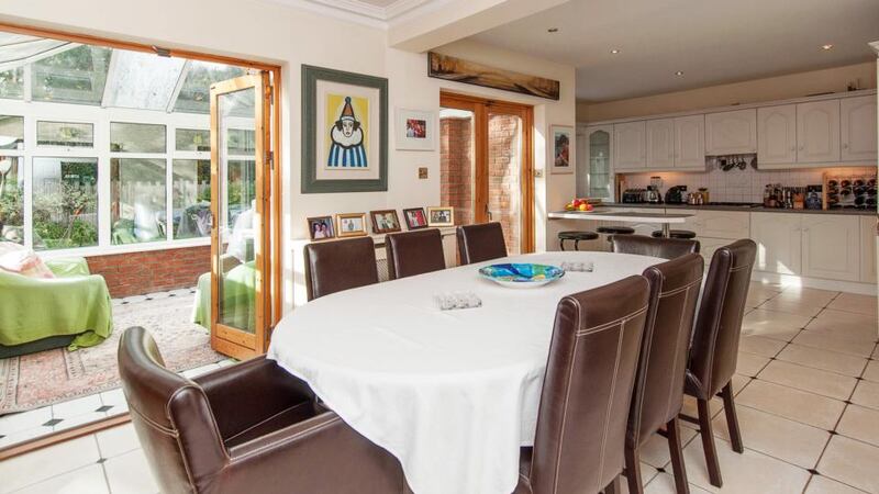 On the box bay window side of the house there is a warm sitting room with an open fire and double doors that lead to the open-plan kitchen/dining- room.