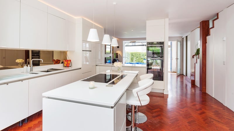 The blue front door of a house in a small terrace near Glasthule, Co Dublin, hints at the modern design inside – but the minimalist chic home behind it is still a surprise. Number 9 St Paul’s Terrace has been completely rebuilt inside in a modern style using top-of-the-range materials.