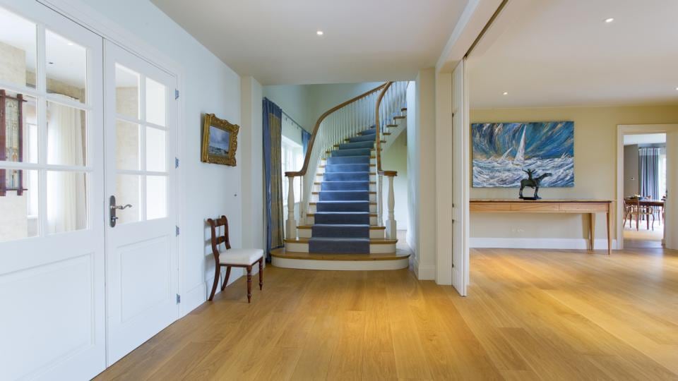 It has all been done to the highest spec, with mahogany windows, Geo Thermal separately zoned underfloor heating on both levels, and energy efficient design giving it a BER of B2. Despite its scale, it is very welcoming.