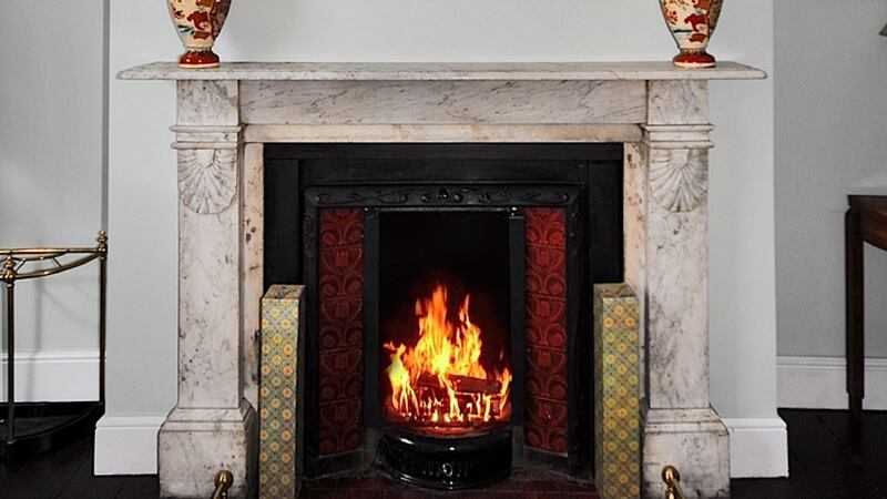 The front-facing, hall floor drawing room has a fine, original marble fireplace with decorative tile inset. A large sash window overlooks a specimen Cordyline palm in the front garden.