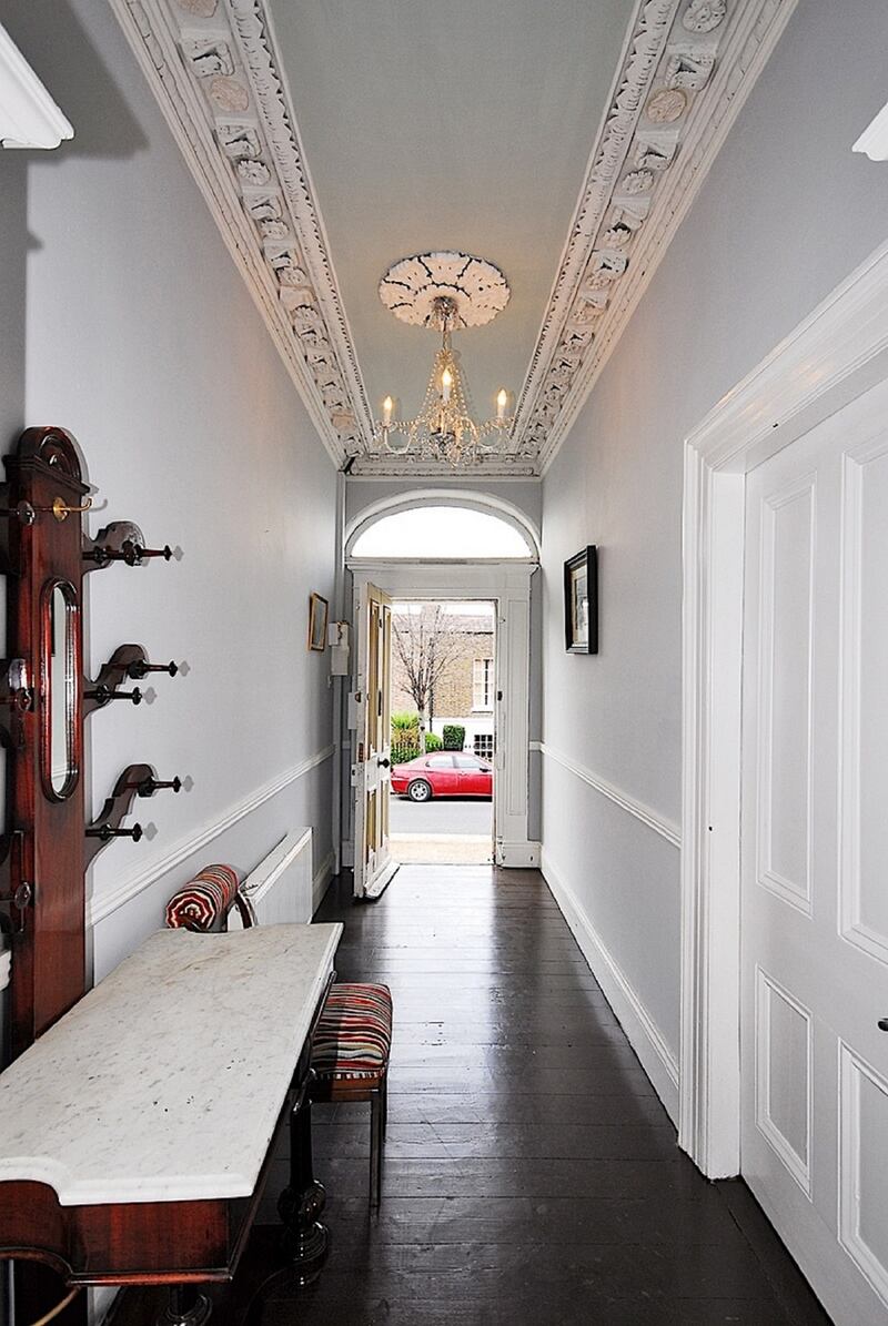 Period features everywhere have been thoughtfully retained to make an elegant statement, extra wide sash windows fill rooms with light, wide-planked floorboards painted a shade of brown give a softer look than the usual black and ornate plasterwork frames high-ceilinged rooms and the entrance hallway.