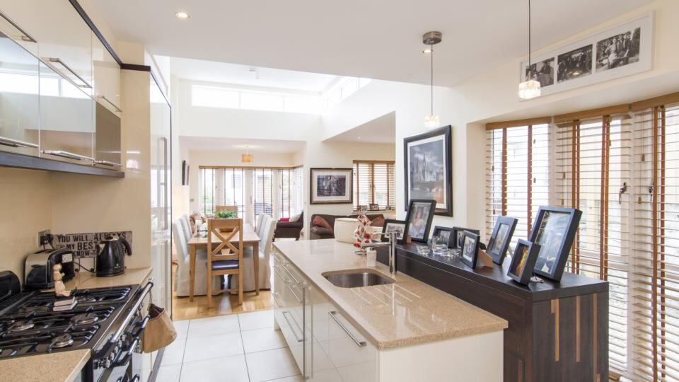 The refurbishment is also responsible for great storage hidden behind large gloss sliding doors in the hall and in the new extension.